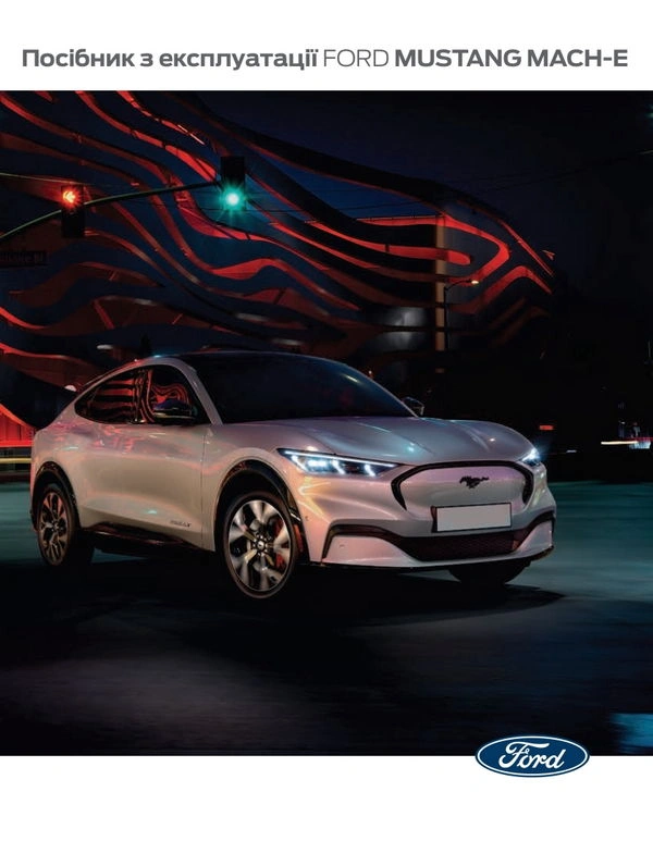Інструкція з експлуатації Ford Mach-E містить повний опис усіх систем і функцій автомобіля, правила безпечного керування, рекомендації щодо обслуговування та поради для використання в різних дорожніх умовах. Посібник допомагає швидко знайти інформацію про елементи управління, особливості роботи обладнання та порядок дій у стандартних і нестандартних ситуаціях.