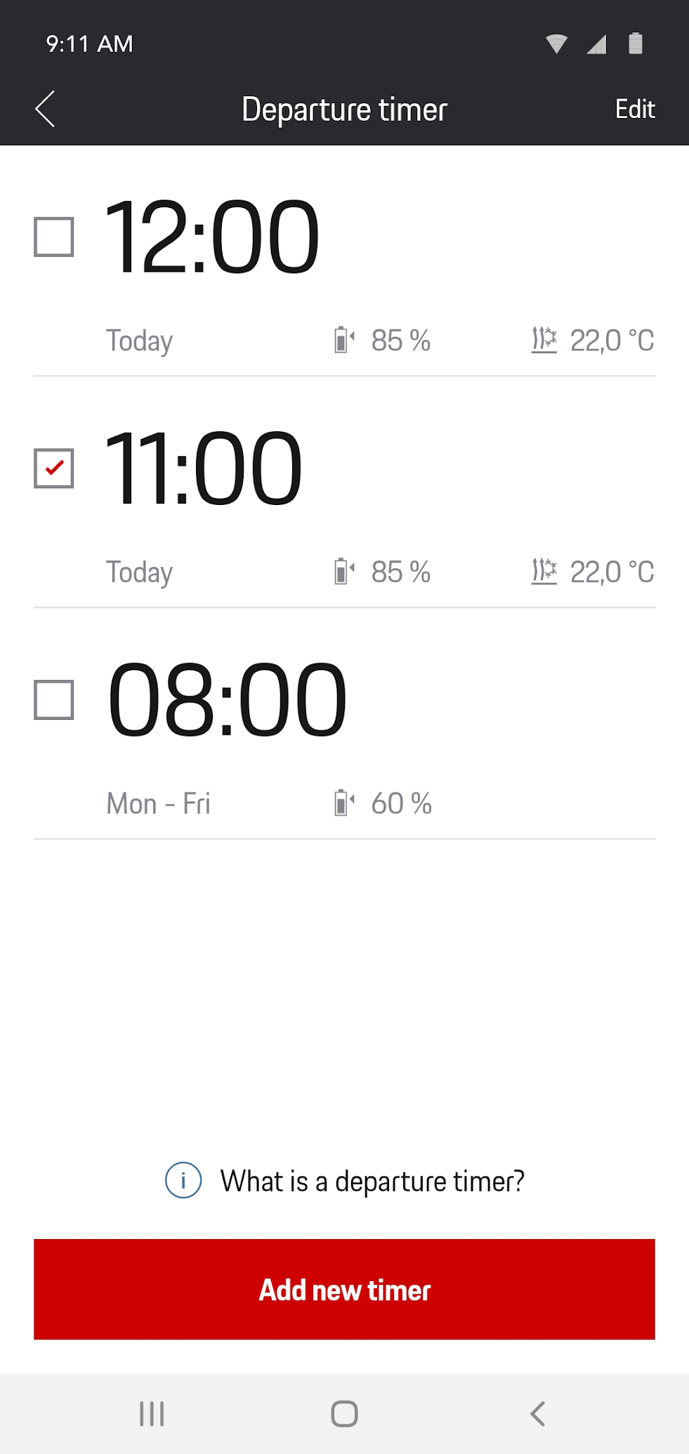 - Використовуйте таймери, щоб встановити бажаний заряд АКБ та температуру салону для разових або регулярних поїздок
