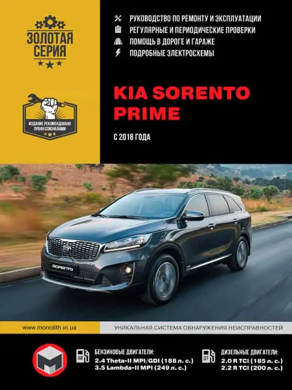 KIA Sorento з 2002 року, бензин та дизель. Книга з ремонту та експлуатації, кольорові електросхеми