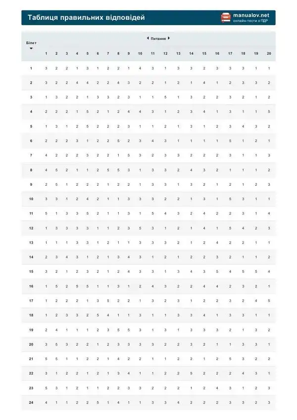 Тести з ПДР та таблиця правильних відповідей. 2021 рік. Видання 2