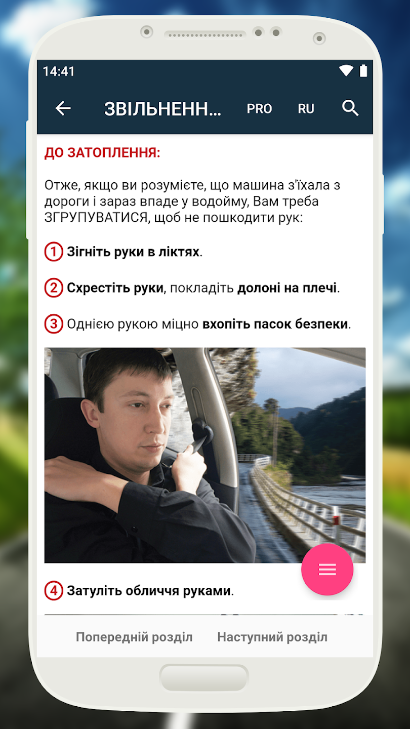 - Звільнення з автомобіля, що тоне
