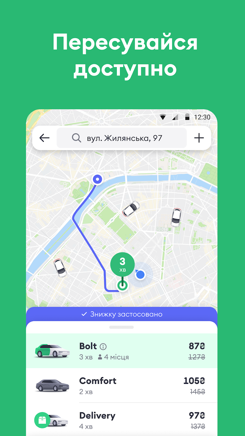Bolt — транспортний додаток для замовлення швидких та доступних поїздок. Замовте поїздку за допомогою смартфона, зустрініть водія та отримайте задоволення від недорогої поїздки.