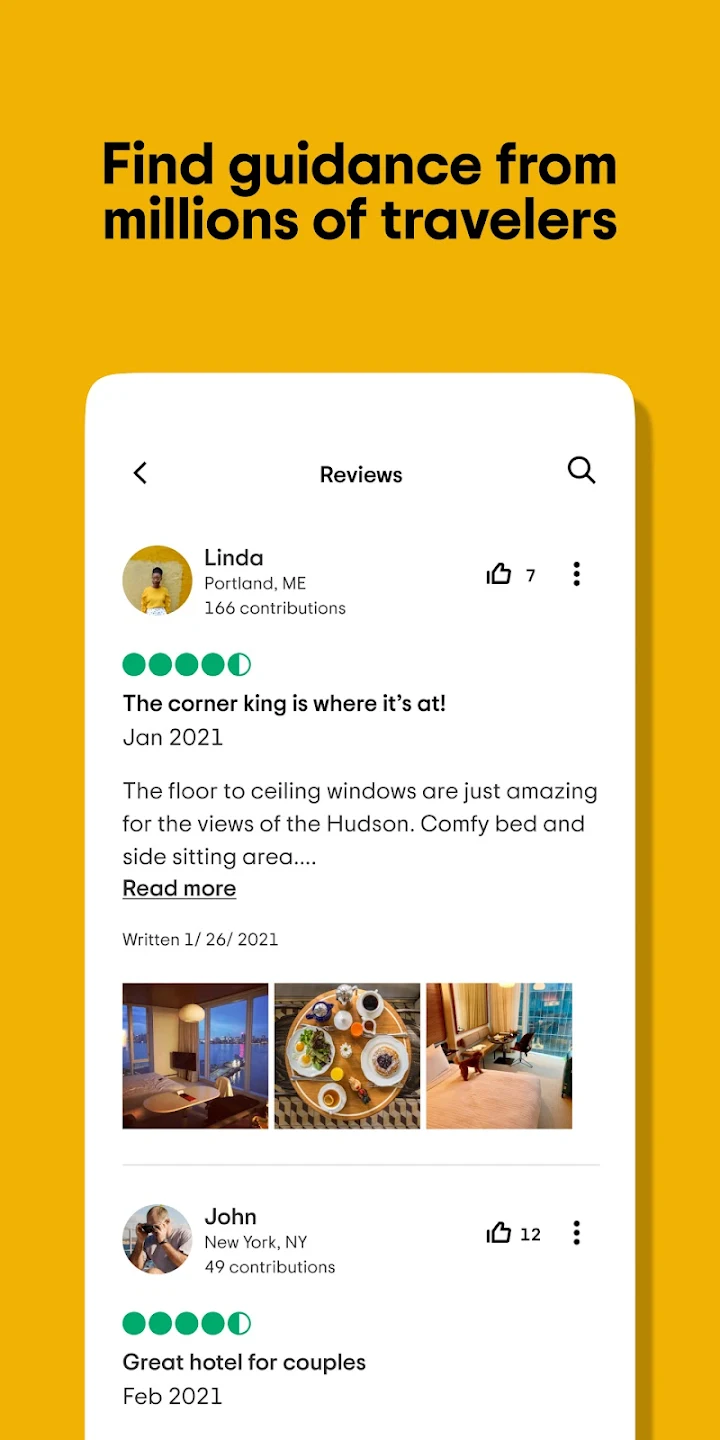 Tripadvisor - це додаток про подорожі, що поєднують людей, пристрасть до подорожей та інформацію про місця та об'єкти. Додаток допомагає у подорожах на всіх стадіях: від планування та бронювання до безпосередньо подорожі. З Tripadvisor ви знайдете поради мільйонів мандрівників, які вже побували у місці Вашого призначення. Вони порекомендують, де зупинитися, чим зайнятися, де повечеряти чи швидко перекусити.