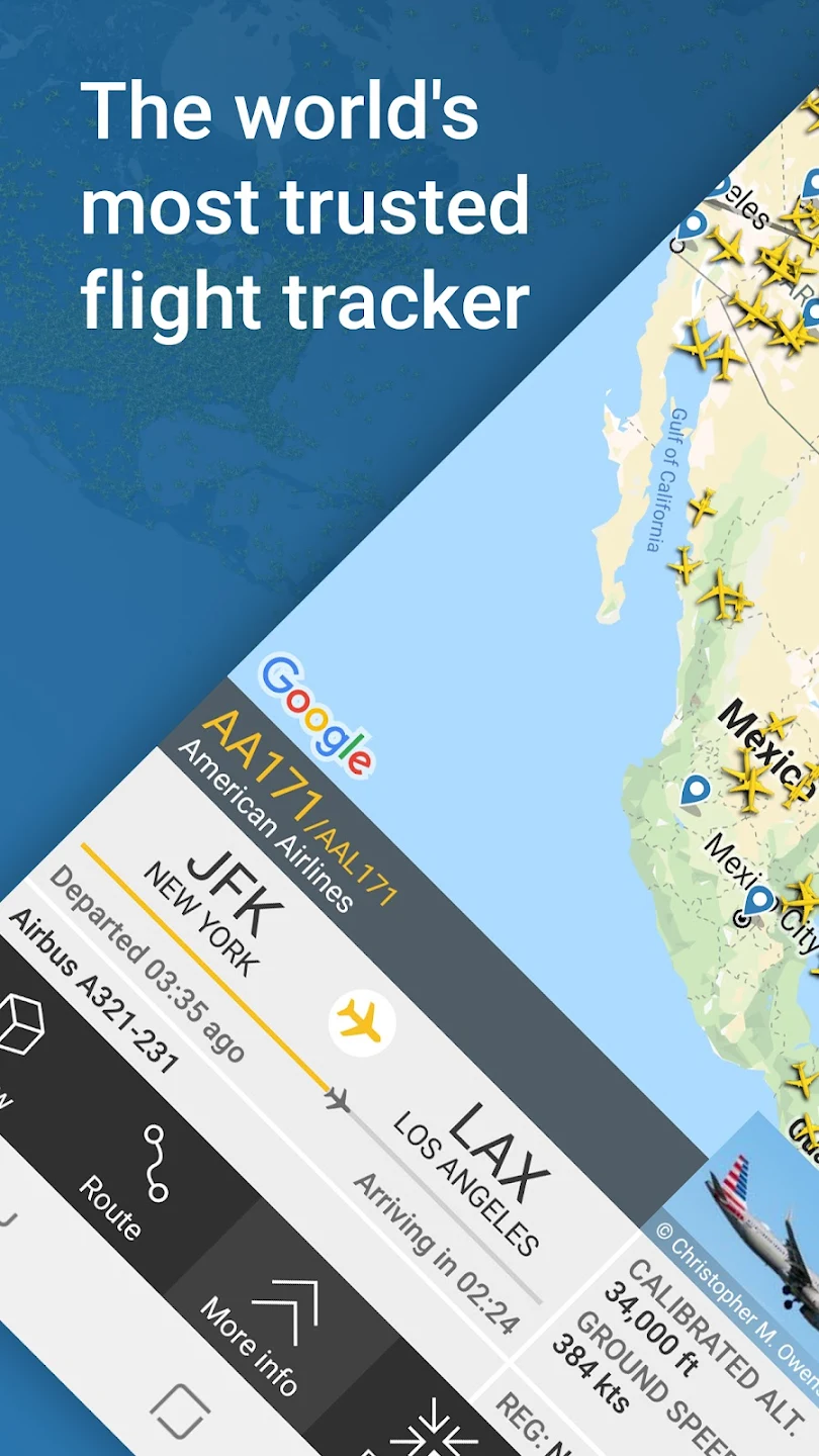Додаток для спостереження за літаками в режимі реального часу, визнаний кращим додатком для подорожей Google Play у більш ніж 100 країнах. Мільйони любителів та експертів у сфері авіації покладаються на Flightradar24 під час спостереження за літаками.