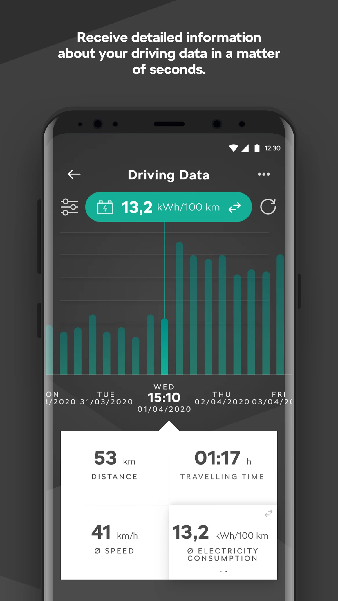Ця програма — ваш ключ до корисних функцій та послуг. Додаток допомагає переглядати корисні дані про керування прямо на дисплеї Infotainment. З його допомогою ви можете записувати докладну інформацію про хід поїздки, зберігати дані про тип подорожі, його маршрут, дату, тривалість, зупинки, максимальну швидкість та кількість обертів двигуна за хвилину. Ви також можете додати фотографії з поїздки, наприклад знімки чеків за паливо або інші корисні зображення.