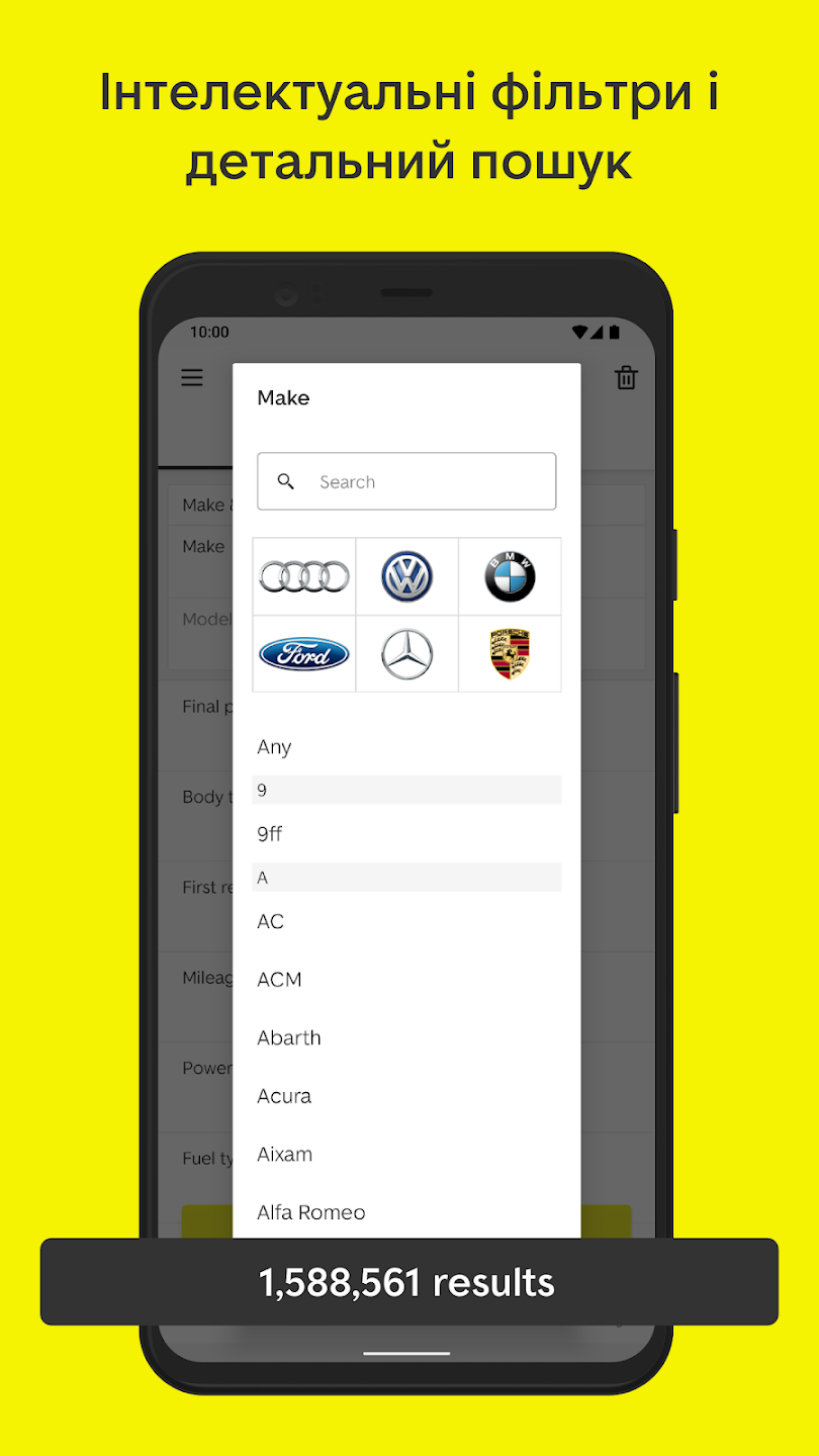 Індивідуальне розташування результатів (ціна, дата реєстрації) , пробіг, характеристики і т.д.)