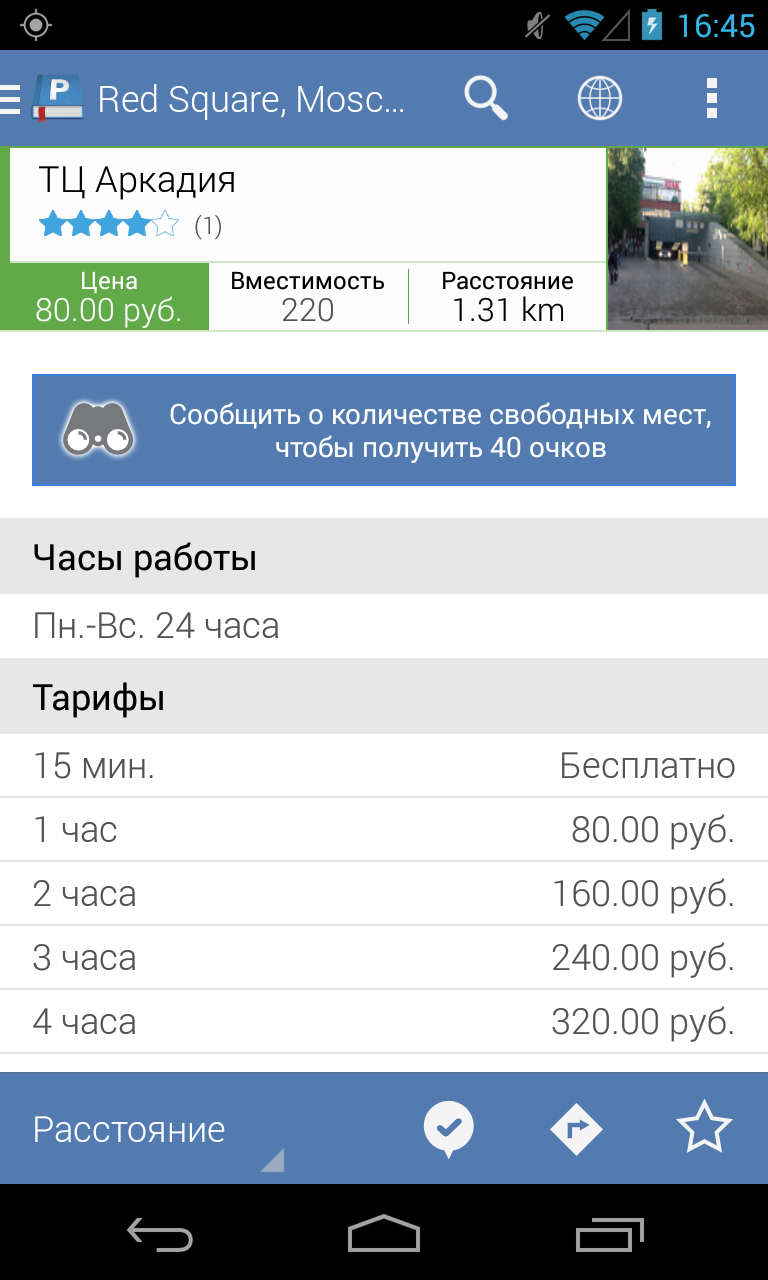 - Знайти інформацію про години роботи паркування, актуальні ціни, способи оплати і т.д.