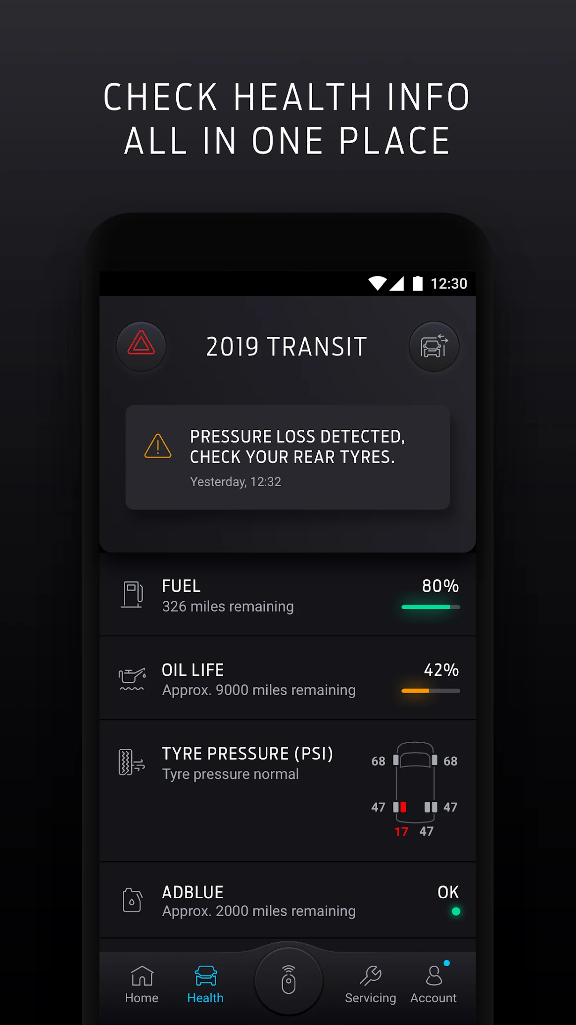 - Якщо виникнуть проблеми з будь-яким з ваших транспортних засобів, вам повідомлять про це Health Alerts.