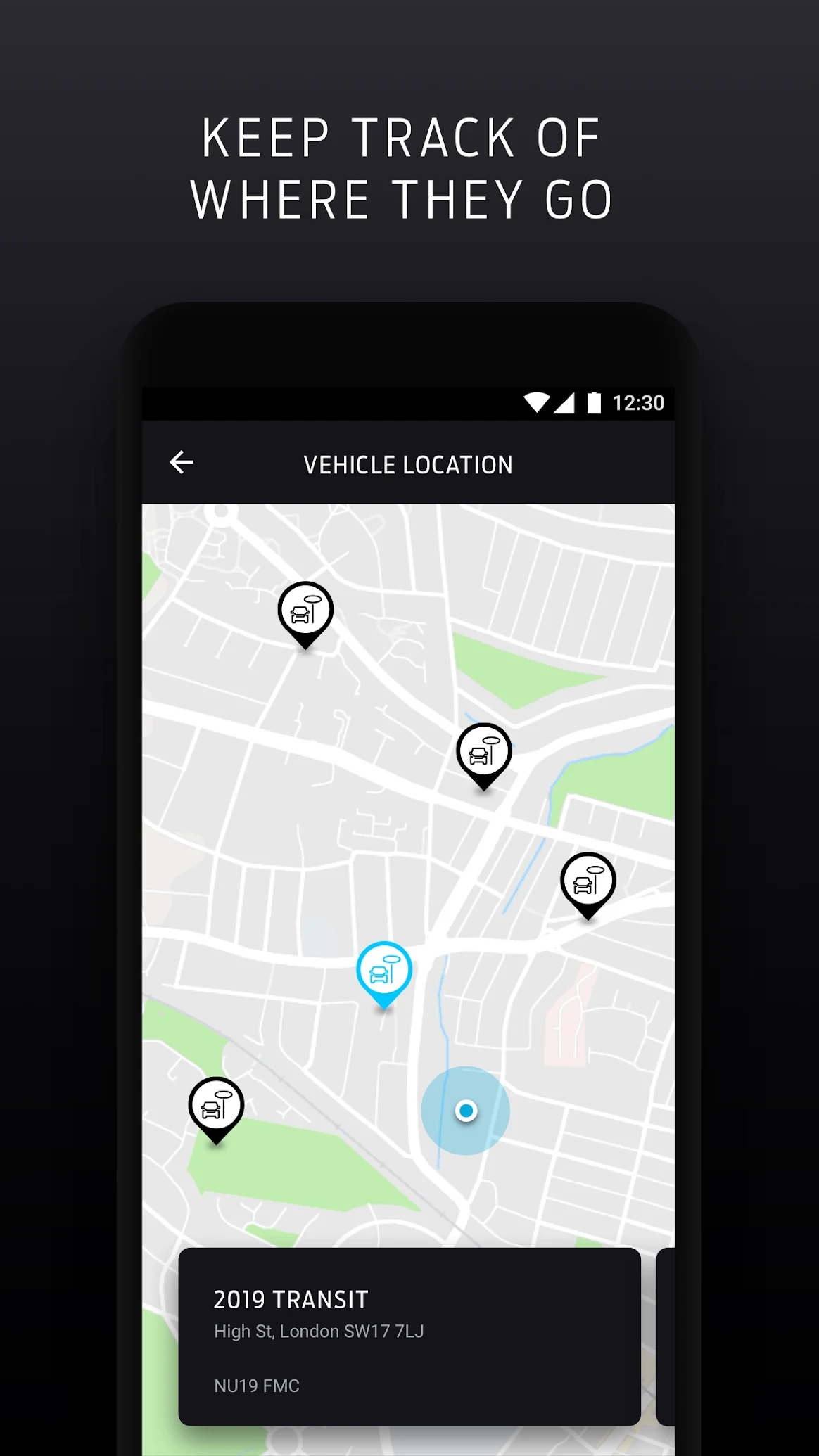 - Дивіться місцезнаходження вашого автомобіля та переглядайте останні розташування всього вашого автопарку на одній карті. Отже, можете бути впевнені, що все в потрібному місці.
