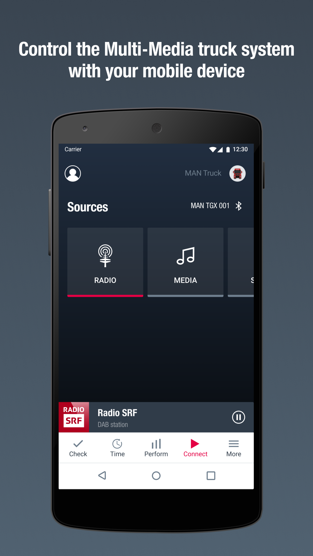 Ви можете керувати мультимедійною системою вантажівки зі свого смартфона або планшета.