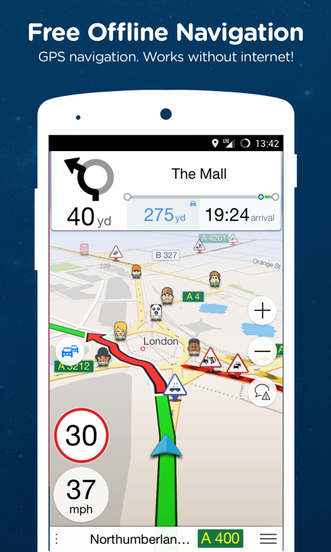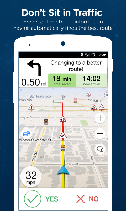 Navfree - безкоштовна GPS навігація, якою користуються понад 20 мільйонів людей у всьому світі. Navmii використовує картки Open Street Map, які встановлюються на ваш телефон або планшет. Таким чином вам не потрібний інтернет для повноцінної роботи навігації.