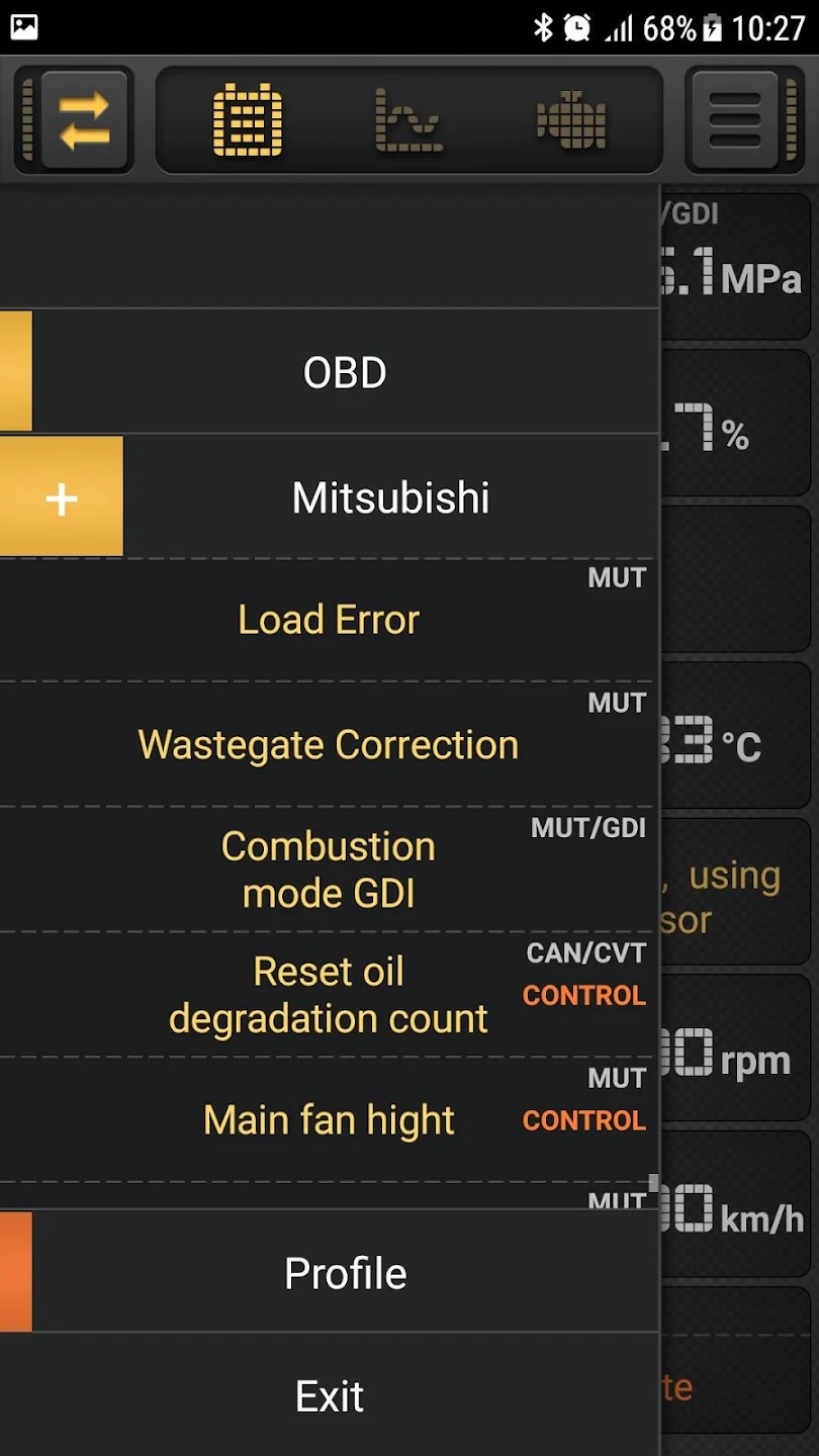 Додаток для діагностики автомобіля дозволяє відображати дані різних електронних блоків (ЕБУ/ECU), використовуючи OBD II ELM327 (ЕЛМ327) адаптер, виводити графіки в реальному часі, а також зберігати їх і переглядати пізніше, читати і стирати помилки OBD 2 (DTC).
