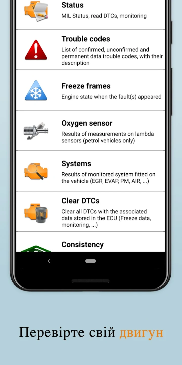 Проведіть діагностику свого автомобіля за допомогою смартфона і дізнайтеся причину, з якої світиться лампочка двигуна. Не треба їхати до автосалону для діагностики! Підключіть інтерфейс ELM 327 до OBD-порту (OBD2) вашого автомобіля та запустіть програму EOBD Facile для автомобільного сканера: ви зможете зчитувати коди несправностей двигуна та трансмісії та переглядати дані з вашого автомобіля в режимі реального часу.