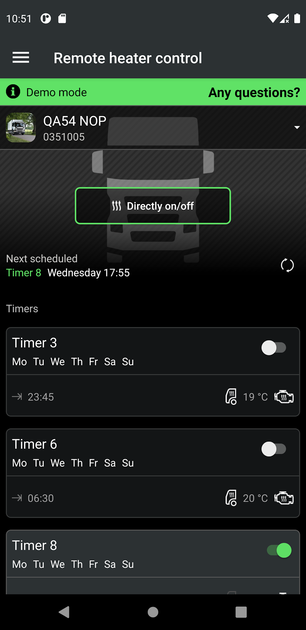 - Управління опалювачами/підігрівачами безпосередньо в автомобілі. За допомогою цієї функції ви можете прогріти кабіну та двигун до необхідної температури перед початком робочої зміни.