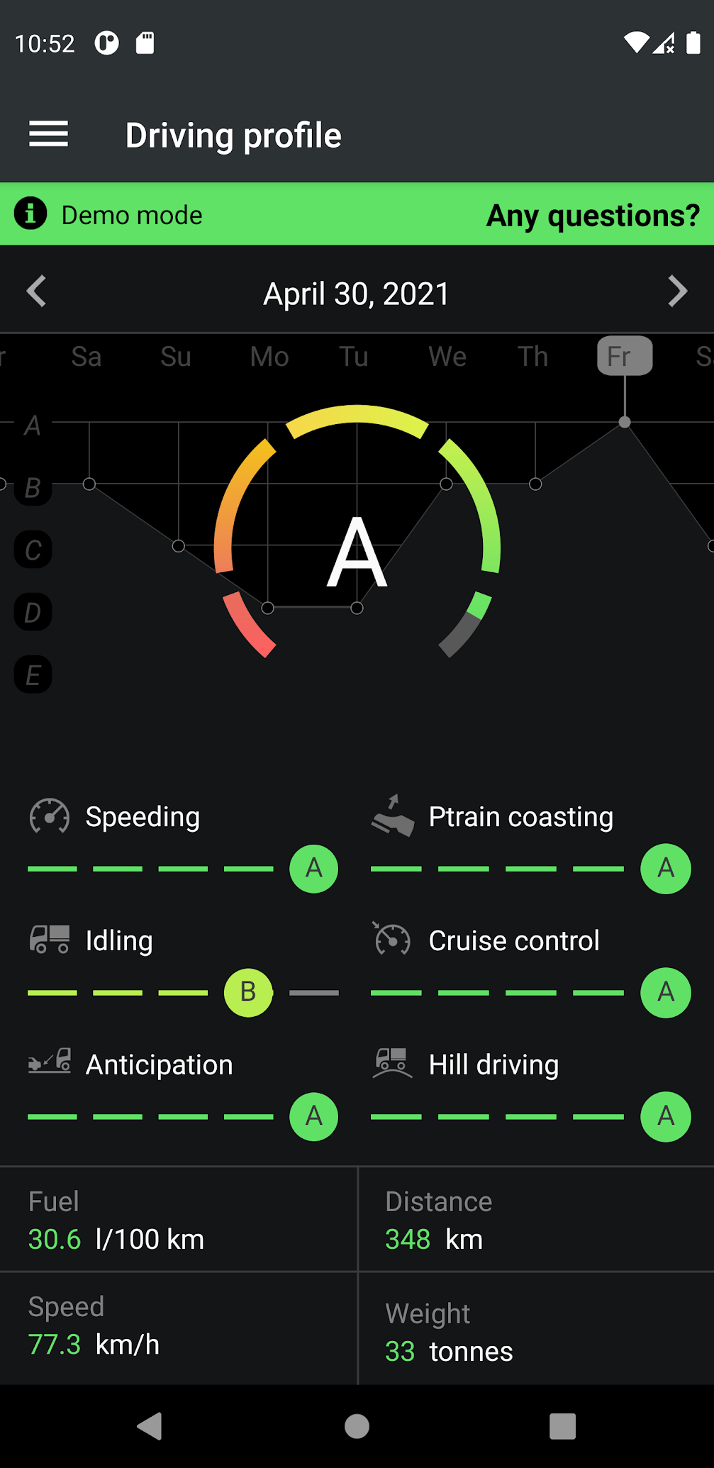 - Показ оцінок, виставлених водіям. Ця оцінка та корисні поради допоможуть водіям покращити професійні навички.