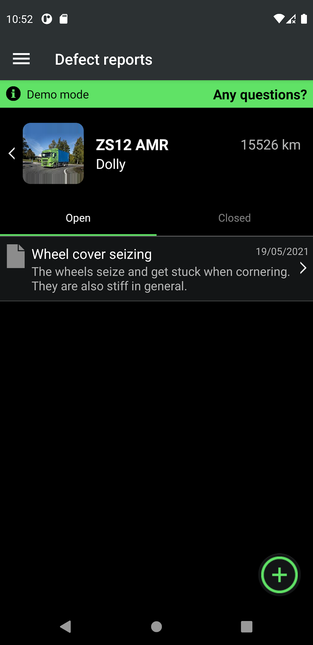 - Оформлення звітів про несправність автомобілів та іншого обладнання. Є можливість додати фотографії та надіслати їх разом зі звітами про несправності.