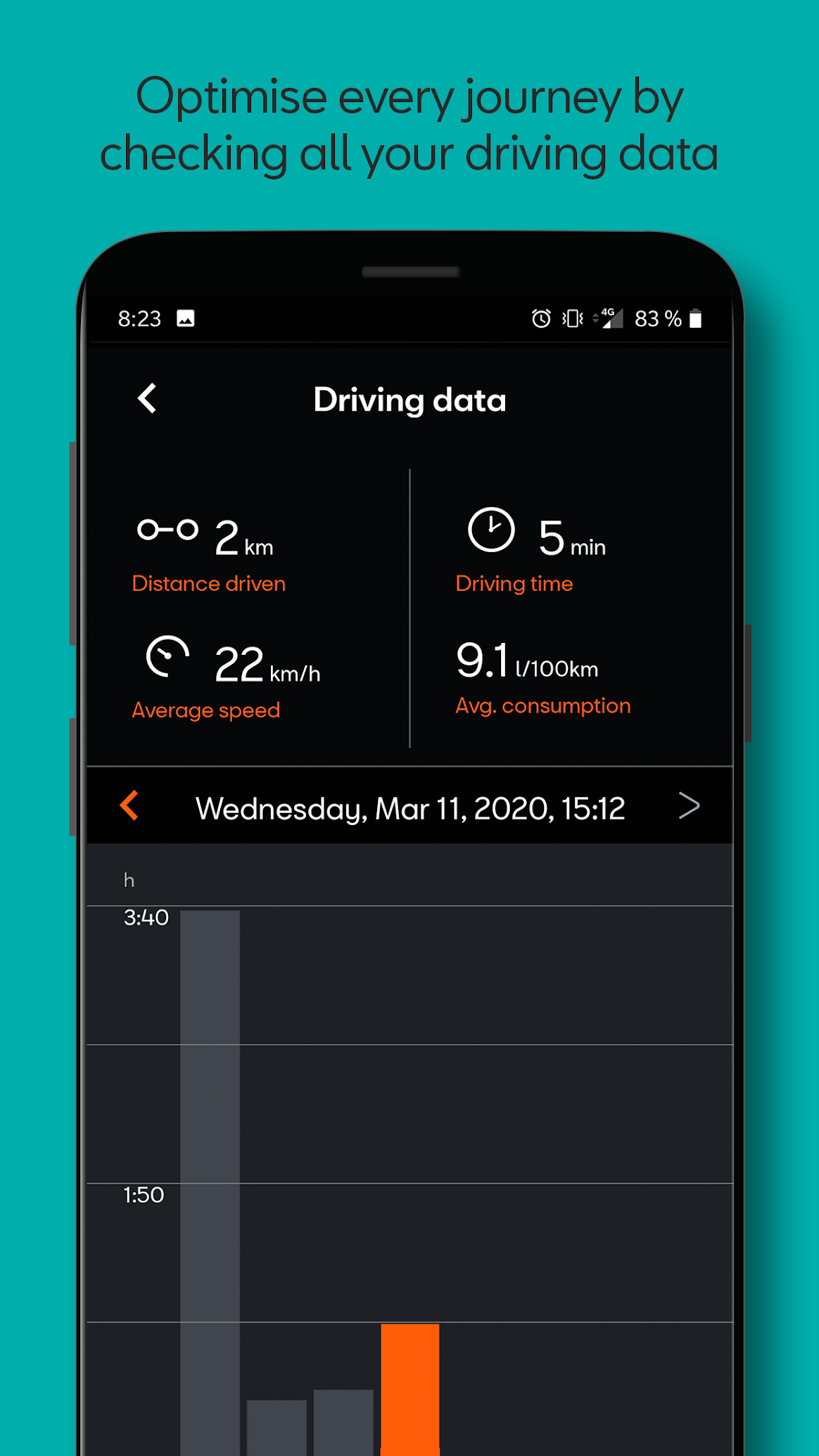 - Дані та аналітика водіння: оптимізуйте кожну поїздку, отримуючи доступ до ключових даних та аналітичних даних, таких як загальний час водіння, пройдена відстань, середня швидкість та загальна економія палива.