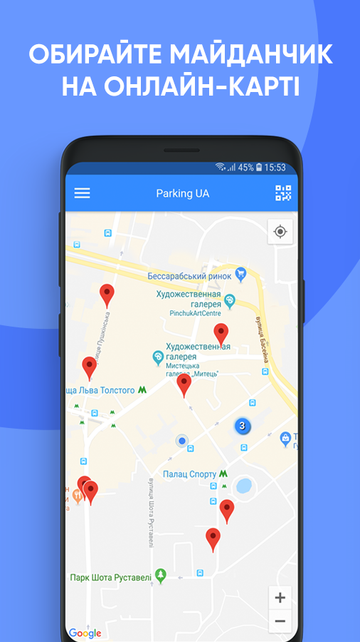 - Оберіть паркувальний майданчик на онлайн-карті - Parking UA покаже найбільш оптимальні варіанти згідно вашої локації та прокладіть найшвидший маршрут швидкого вибору