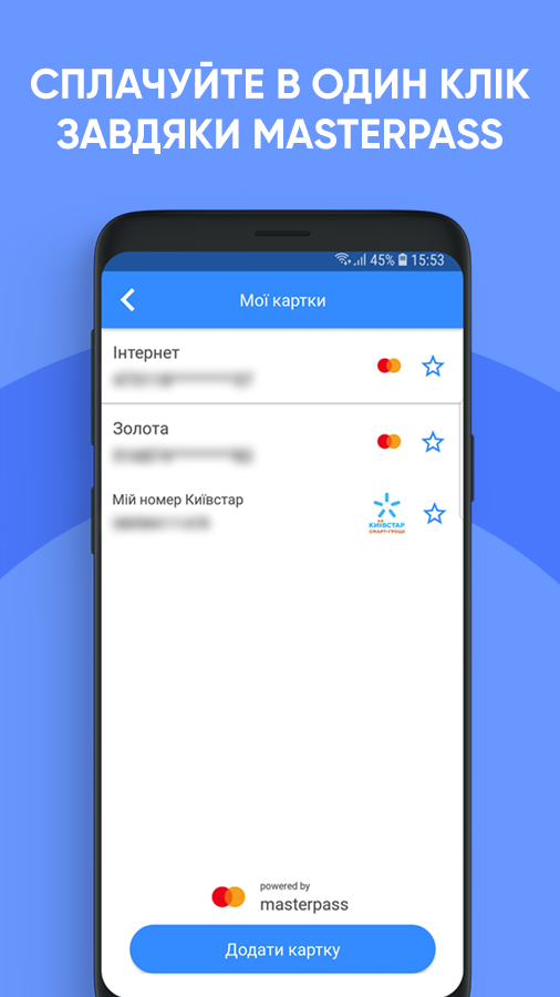 - Сплачуйте мобільним рахунком «Київстар» завдяки функції «Смарт-Гроші»
