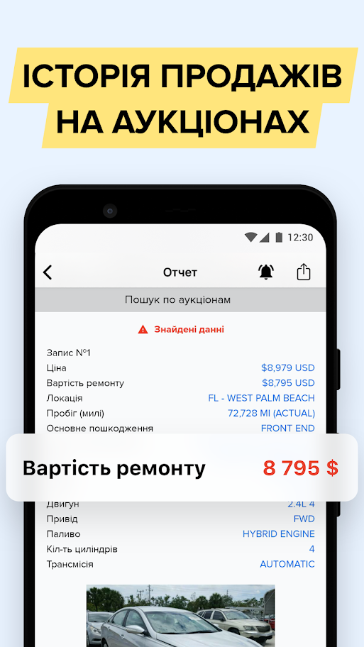 - аукціон та вартість авто на аукціоні (RST, IAAI, Copart, cars.com)