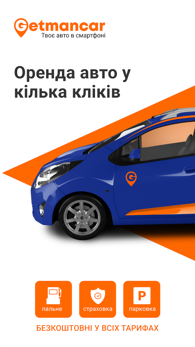 Послуга каршерингу Getmancar дозволяє знайти на карті, забронювати та відкрити автомобіль за допомогою мобільного додатка без відвідування офісу та оформлення паперових документів. Послуга каршерингу надається за допомогою смартфона. Скачай програму на свій смартфон, зареєструйся. Ключі та документи вже в автомобілі.