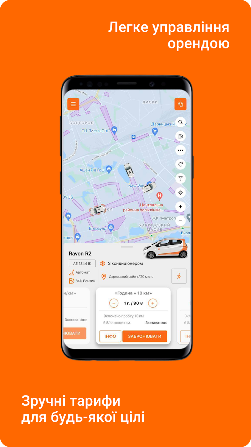 Тільки ти керуєш автомобілем, музикою та кліматом в авто. Візьми машину на кілька хвилин, днів чи доби. За паливо, миття та паркування по місту платити НЕ потрібно!