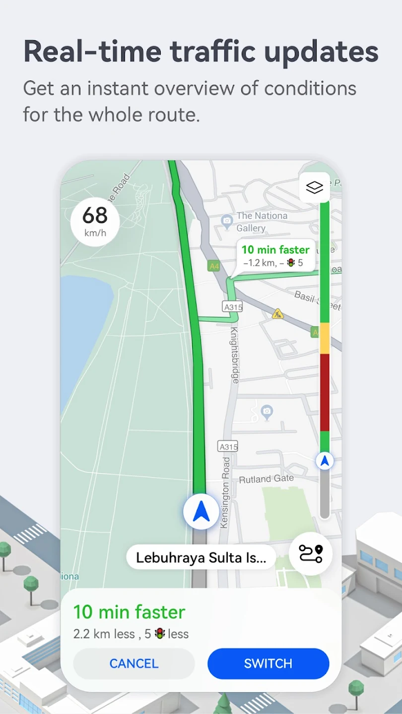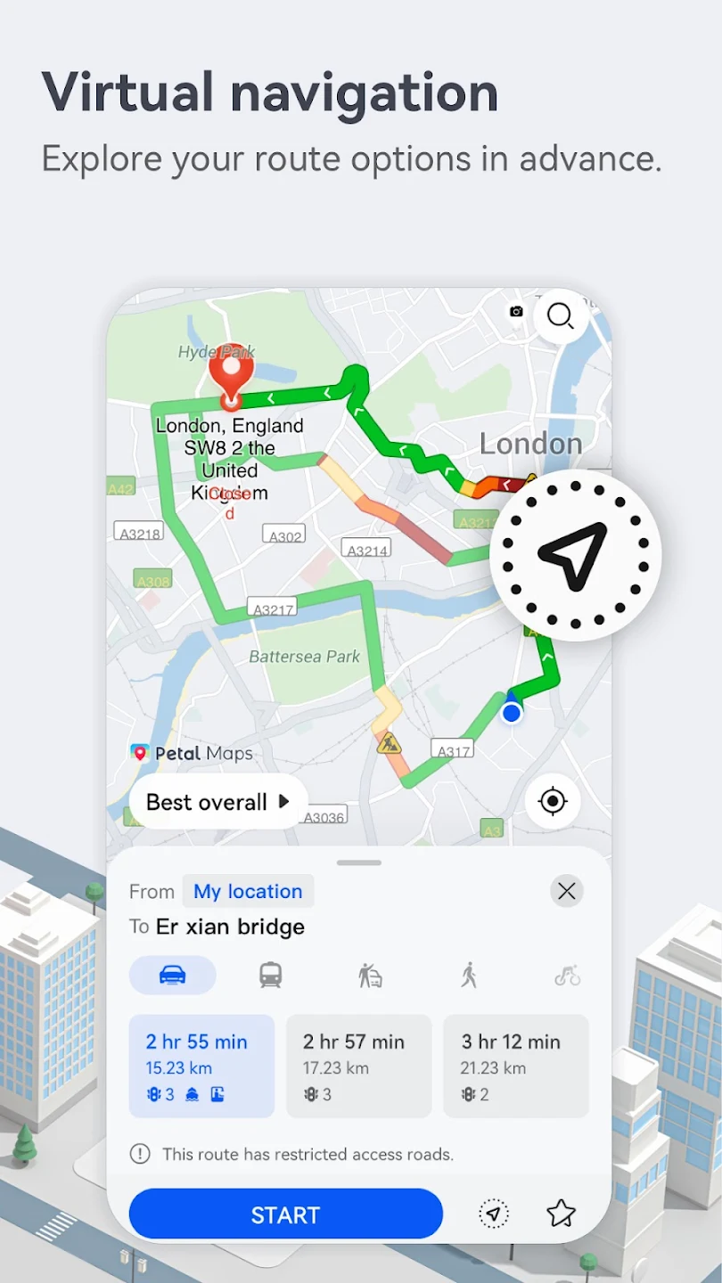 Petal Maps дозволяє по-новому досліджувати світ довкола вас. Додаток доступний у більш ніж 140 країнах та регіонах. Воно дозволяє не тільки визначати поточне місцезнаходження, переглядати карту, шукати місця та додавати їх у вибране, але також відображає інформацію про дорожню ситуацію, пробки та аварії в режимі реального часу.