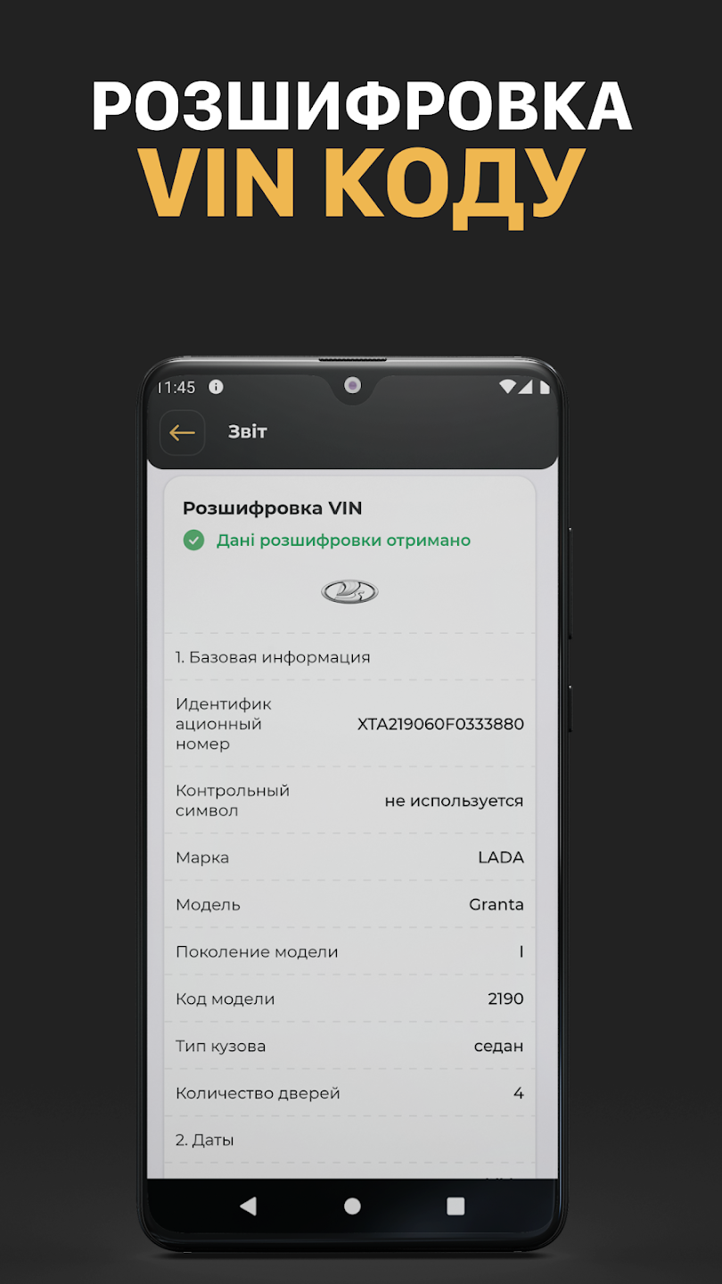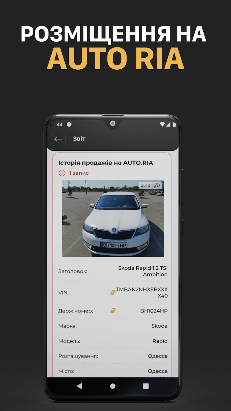 - перевірка авто з державної номеру, VIN коду, або технічним паспортом;