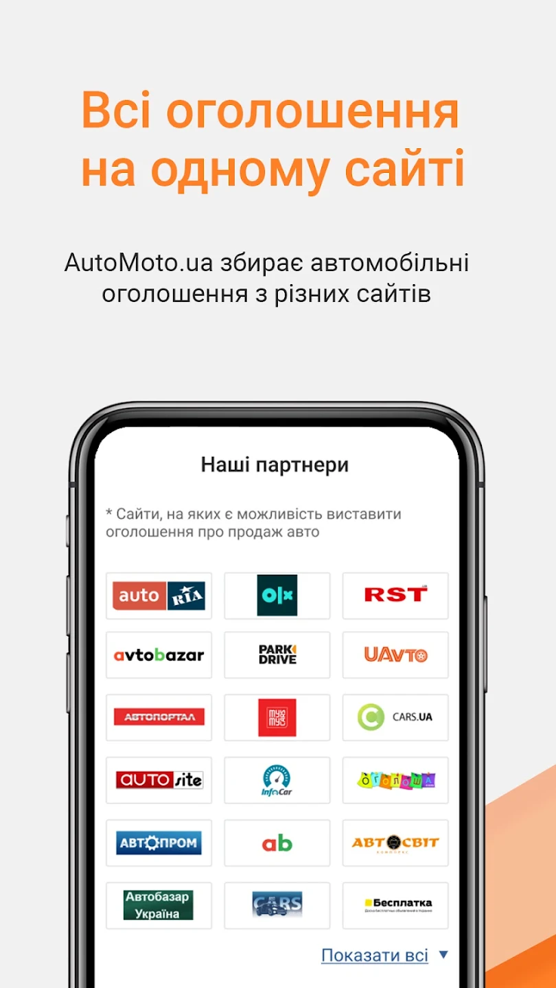 На AutoMoto.ua зібрано понад 300 000 оголошень зі 100 сайтів - від легкового транспорту до спецтехніки. Вам не потрібно відвідувати безліч сайтів, щоб підібрати транспорт, адже все зібрано в одному додатку.