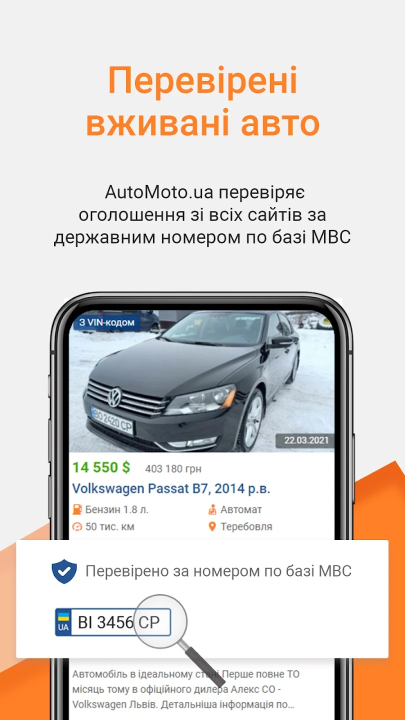База оголошень агрегатора AutoMoto.ua оновлюється щохвилини, при цьому використовується спеціальний алгоритм, який перевіряє вживані автомобілі за даними МВС. Завдяки цьому ви легко зможете вибрати автомобіль, який буде перевіреним і максимально відповідати вашим вимогам.