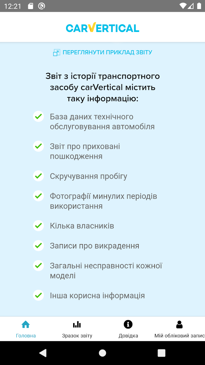 До того ж, додаток carVertical надасть вам деталізований перелік контрольних питань для перевірки транспортного засобу в реальних умовах. Якщо під час перемовин із продавцем вам знадобиться будь-яка інформація про автомобіль, чи то місце розташування VIN-коду на кузові, чи то характерні недоліки даної моделі, ви завжди можете покластися на наш додаток.