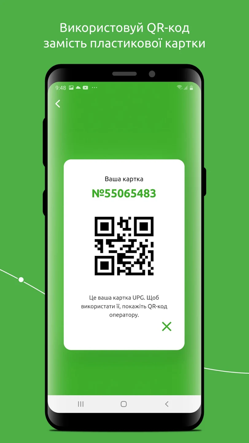 - Користуватись QR-кодом замість пластикової картки UPGgood;