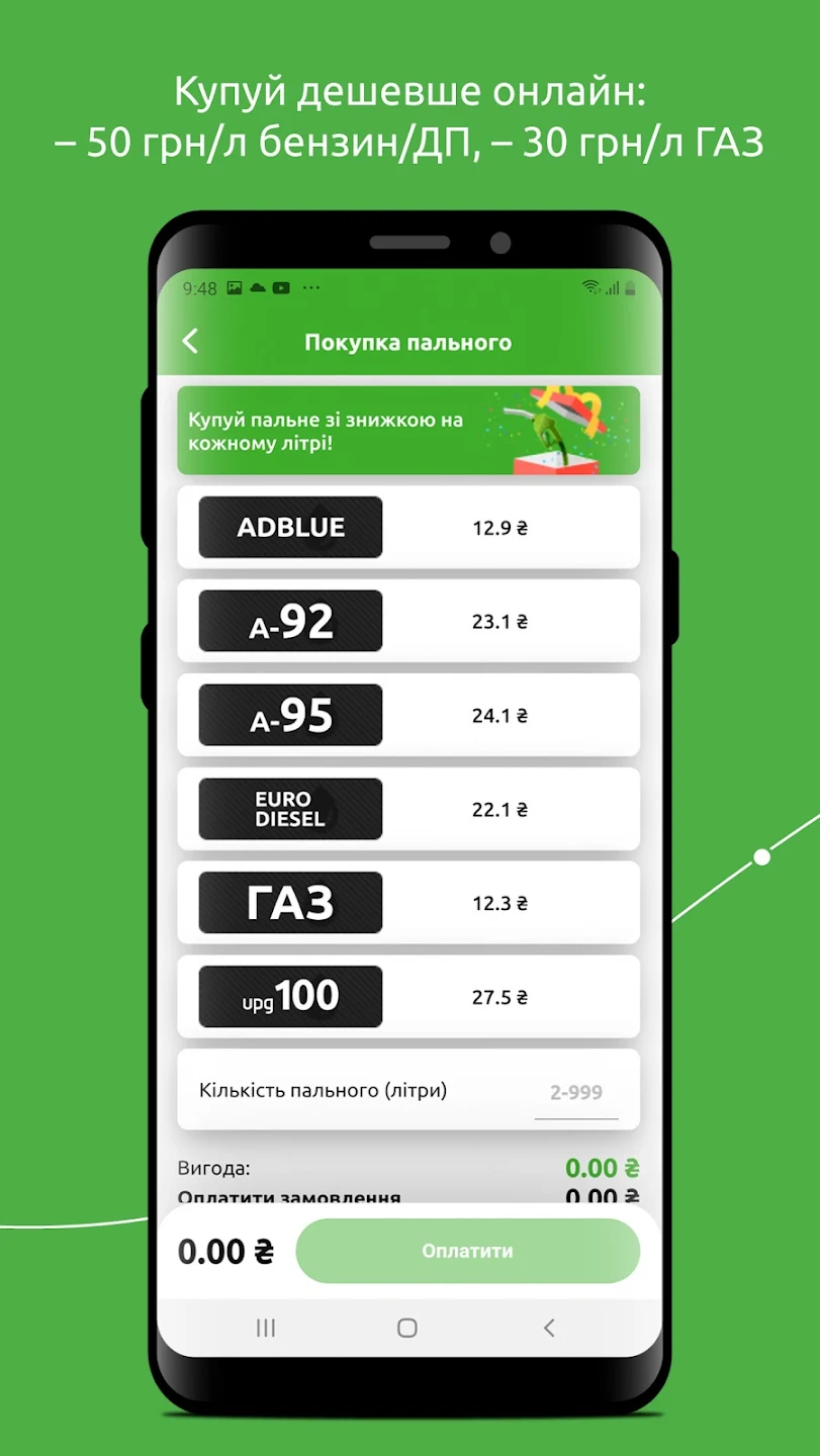 За допомогою офіційного мобільного додатку мережі АЗК UPG Ви можете: