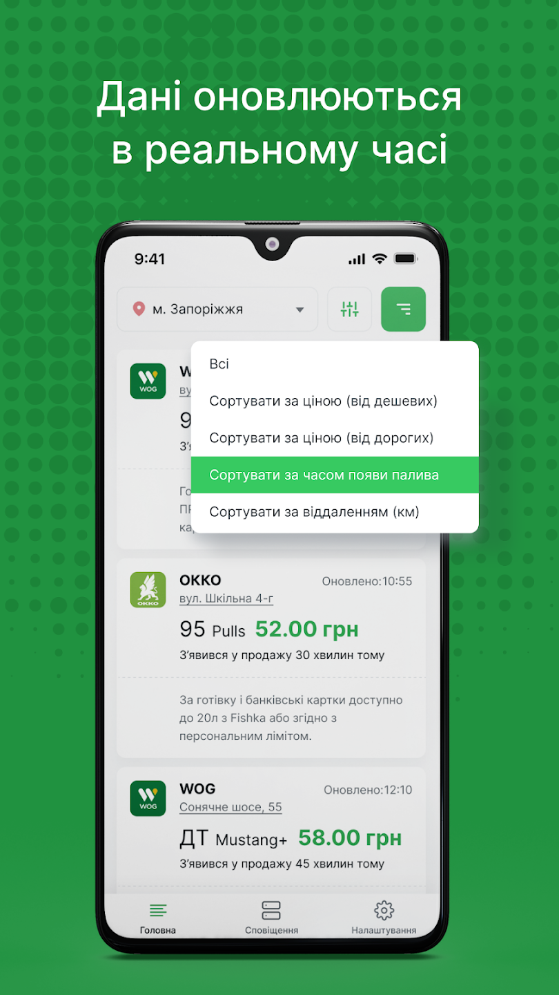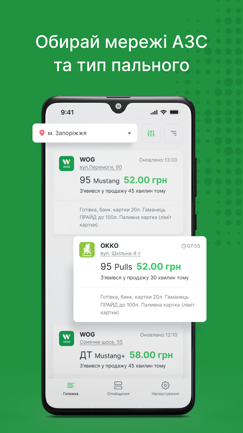 - Сповіщення щойно бензин, дизель або газ з'явився в наявності на АЗС