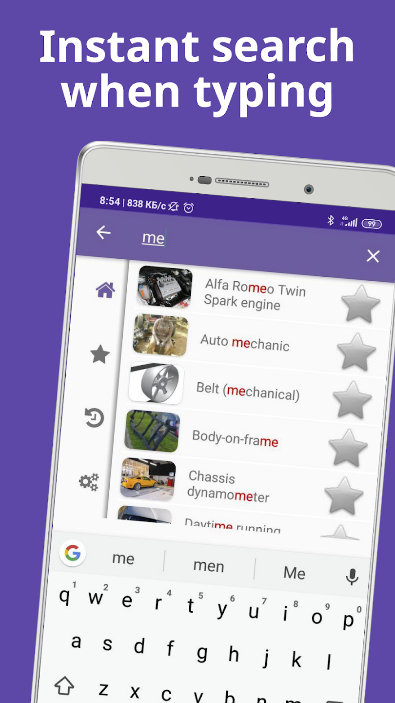 - Швидкий пошук описів. Функція динамічного пошуку почне шукати слова негайно під час введення;