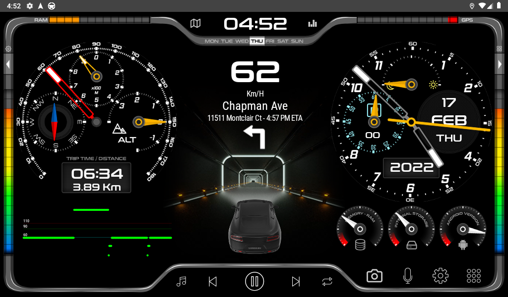 CarWebGuru car launcher - ваш новий друг і помічник у поїздках і подорожах. Включені функції: автомобільний лаунчер, віджети, набір стильних великих спідометрів, підтримка системних віджетів, музичний плеєр з візуалізацією та пошуком, можливість вибрати логотип вашого автомобіля, встановити власне фонове зображення, запис і перегляд географічних треків, повноекранний режим, вбудовані віджети, вимірювання швидкості та прискорення, графіка швидкості відображення та багато інших корисних функцій.