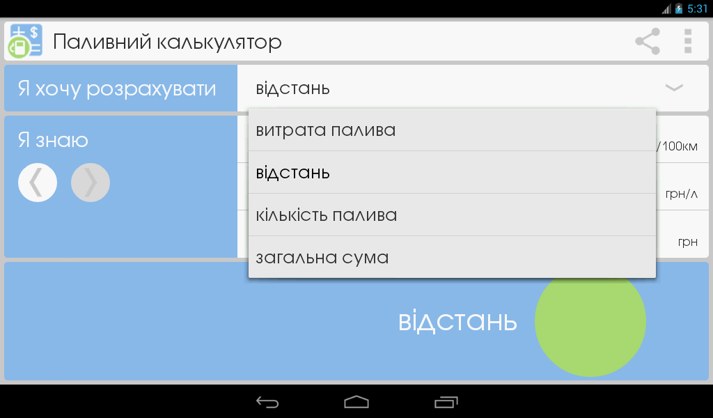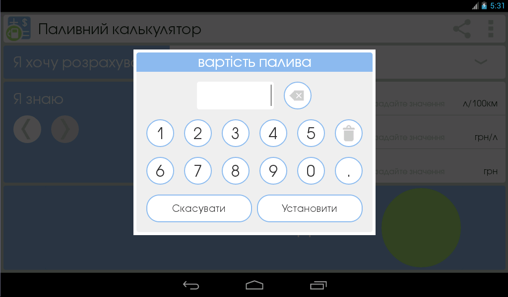 Корисний додаток, що розроблений спеціально для водіїв. З його допомогою ви зможете швидко та легко розрахувати: витрату пального Вашого авто, вартість та кількість пального, що потрібне для поїздки, відстань, яку Ви зможете проїхати після заправки.