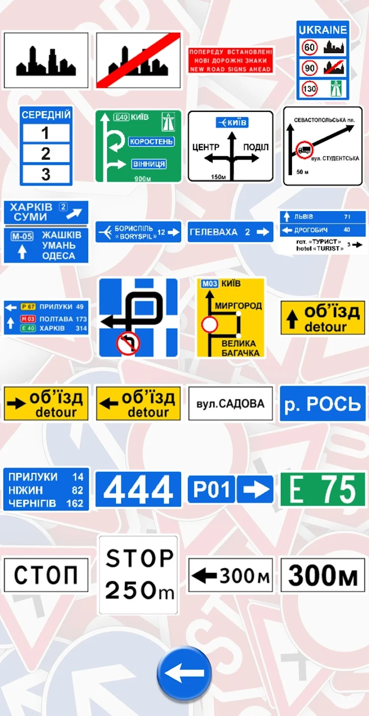 За допомогою додатку ви зможете вивчити актуальні дорожні знаки України. Ще ніколи вивчення ПДР не було таким цікавим дійством.