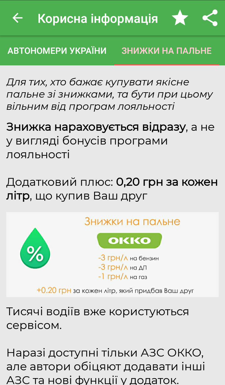 Містить приємні бонуси: знижки на АЗС; автономери по областях України (АА - Київ, ВС - Львівська обл., ...).
