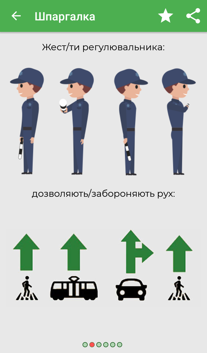 Додаток подає жести регулювальника у зрозумілому вигляді, в якому їх легко запам'ятати. Він допоможе Вам не тільки опанувати цю здавалось би нудну тему, але і безпосередньо перед іспитом буквально за пару хвилин освіжити свої знання.