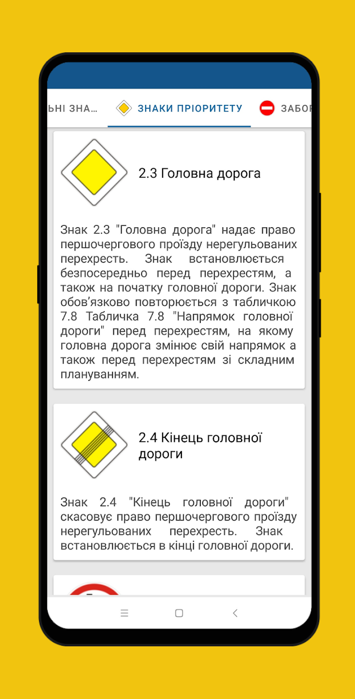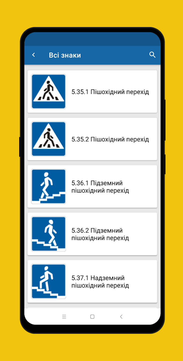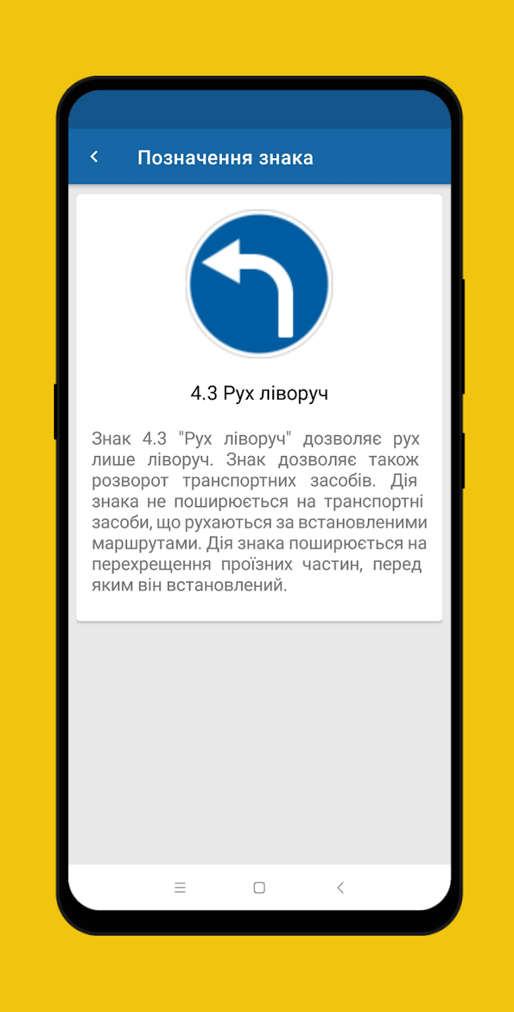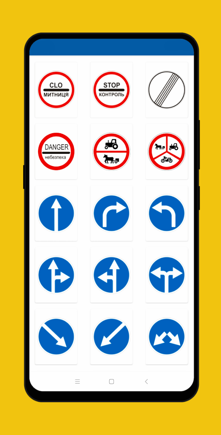Додаток містить актуальні Знаки Дорожнього Руху України (ПДР). З його допомогою Ви зможете вивчити ПДР, або освіжити знання. Додаток має зручний інтерфейс та не потребує підключення до Інтернету.