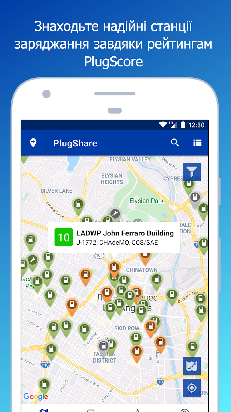 PlugShare: карта зарядних станцій ЕМ та Tesla