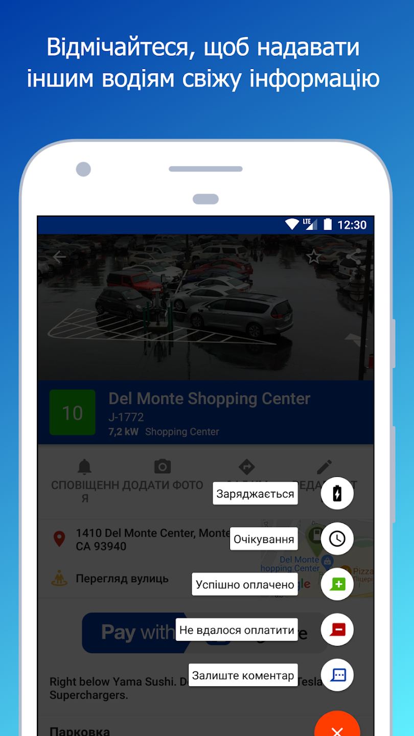 Платити за зарядку прямо в додатку через Pay with PlugShare (на станціях, що беруть участь в акції).