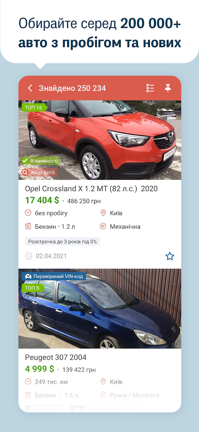 1. Простий інтерфейс та параметри точного пошуку допоможуть знайти найкраще серед 250 000+ автомобілів з пробігом та нових авто з автосалонів: