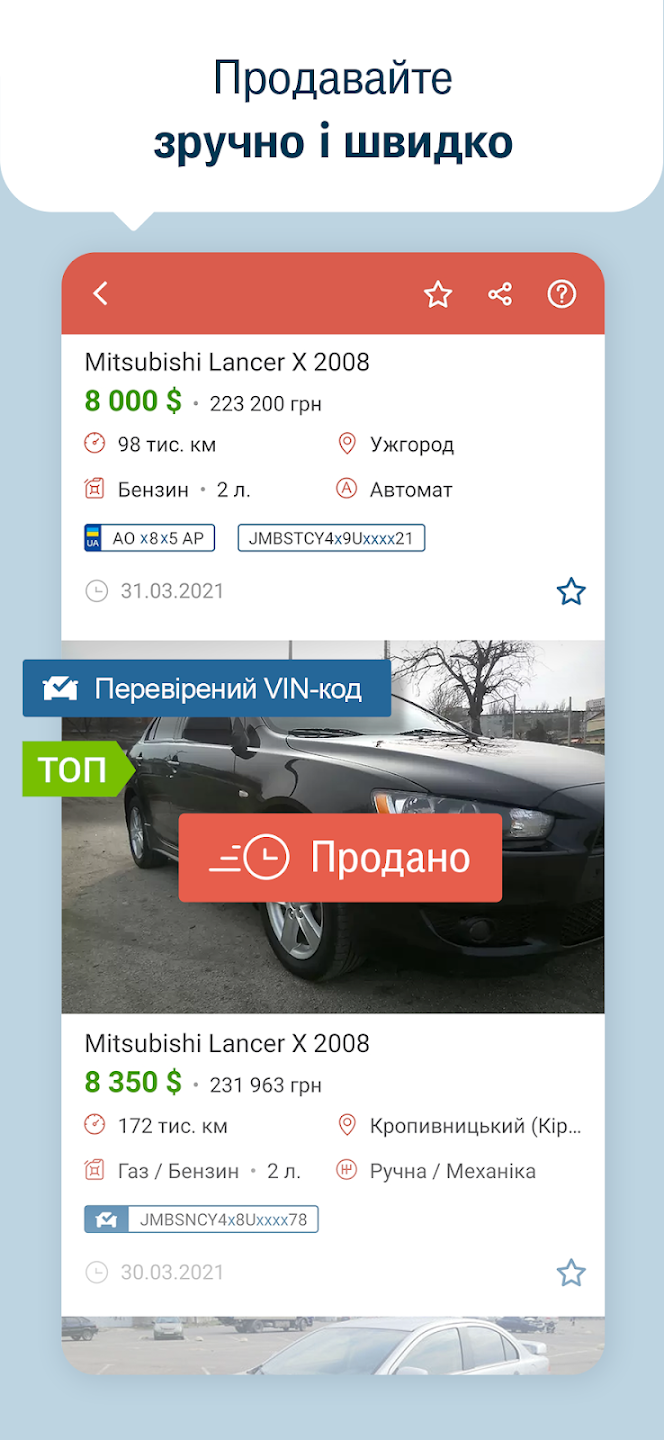 4. Продавайте авто швидше - піднімайте оголошення в ТОП, на вищі позиції пошуку, і отримуйте більше дзвінків покупців.