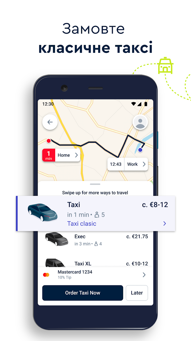 Ліцензований додаток для замовлення таксі та інших видів транспорту в 10 європейських країнах. Виберіть куди прямуєте, замовте в один клік, швидко оплатіть у додатку і безпечно подорожуйте.