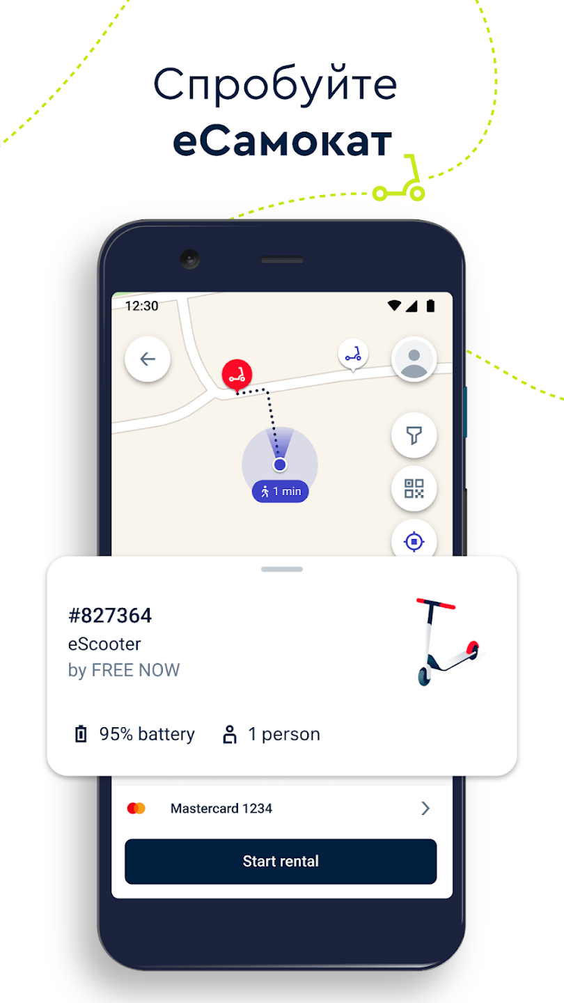 - Розблокуйте транспортний засіб, відсканувавши QR-код або вибравши його безпосередньо на карті