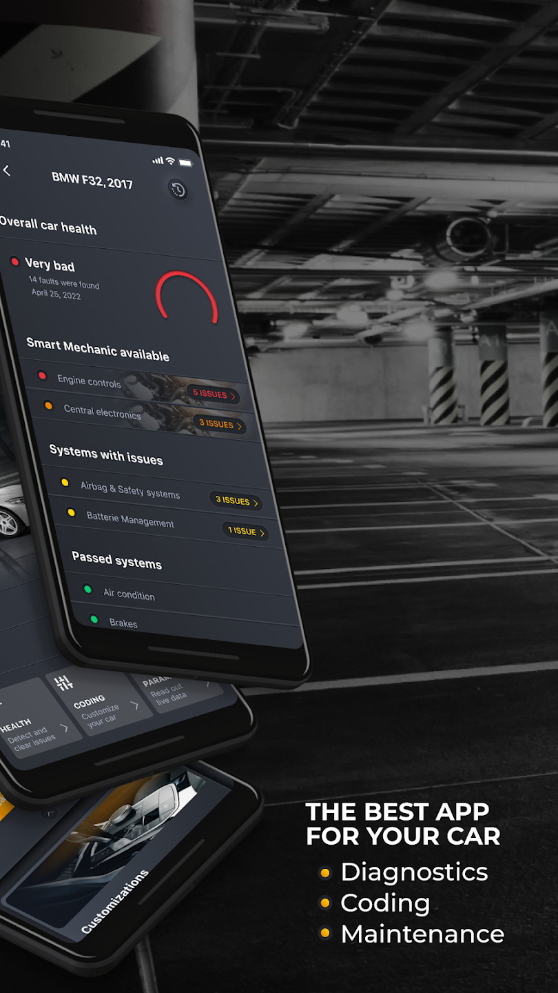 Сканер і додаток працюють для Audi, BMW, Ford, Mercedes, Mini, Porsche, Renault, Seat, Skoda, Toyota, VW і майже всіх марок автомобілів у світі, що мають порт OBD2.Основні функції застосунку Health (OBD), Live Data (OBD) та Emission Check (OBD) дозволять вам контролювати найважливіші системи автомобіля — двигун і трансмісію.