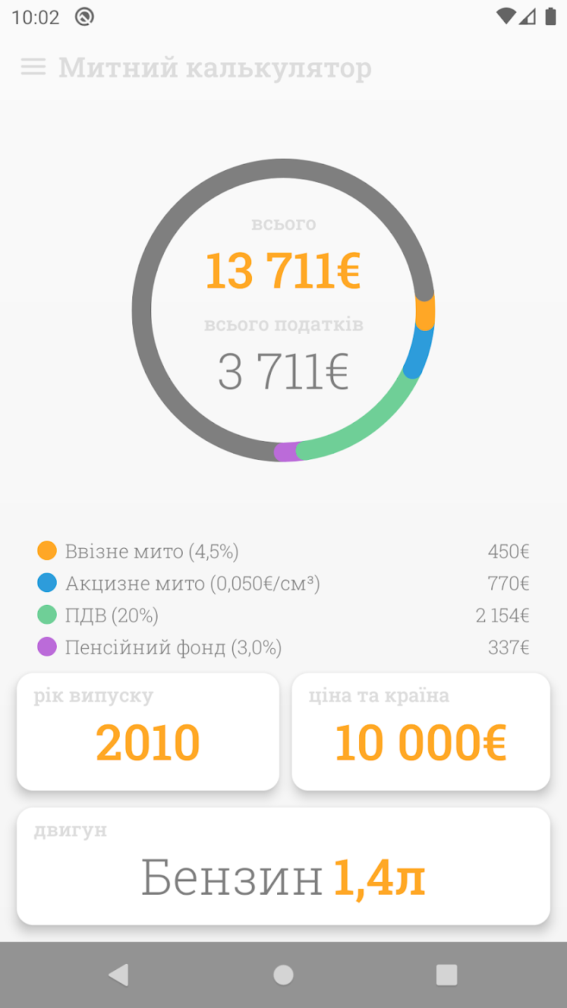 Калькуляція всіх необхідних платежів при ввозі автомобілів на митну територію України з першою реєстрацією автомобілів в Сервісному центрі МВС (МРЕВ).