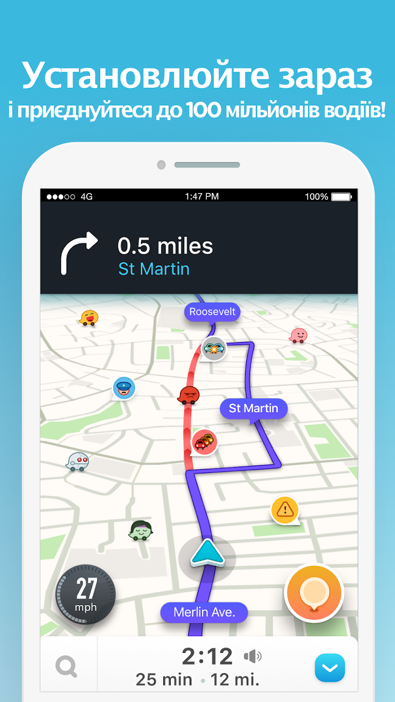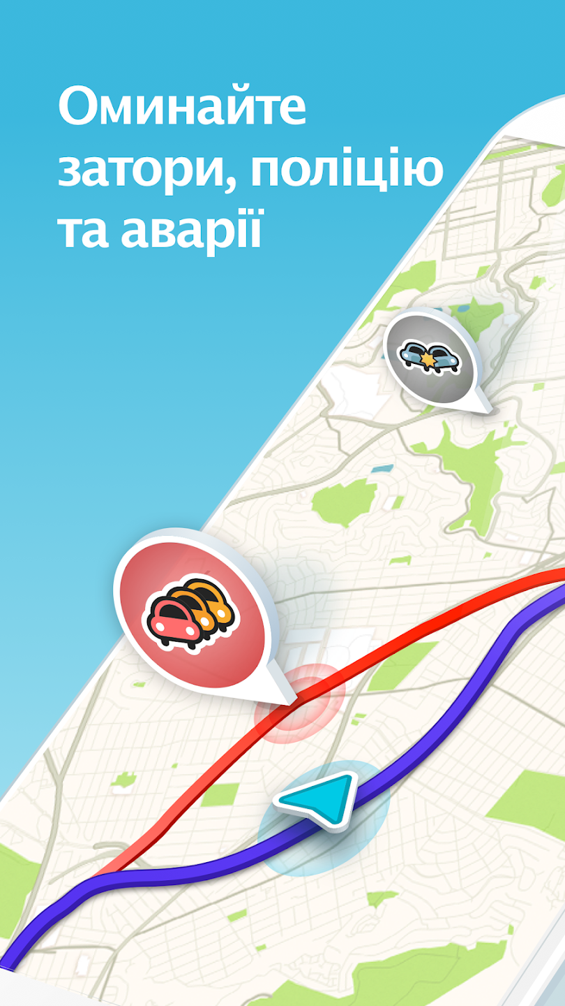 - Тримайте руку на пульсі — сповіщення про затори, поліцію, небезпеки і багато іншого на Вашому маршруті